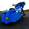 This is Mark's 2010 HD-FLH with only our 9 degree "Tricky Trees" holding a 23'' wheel and tire. Remeber there is no cutting of your frame needed to run our "Tricky Trees"!